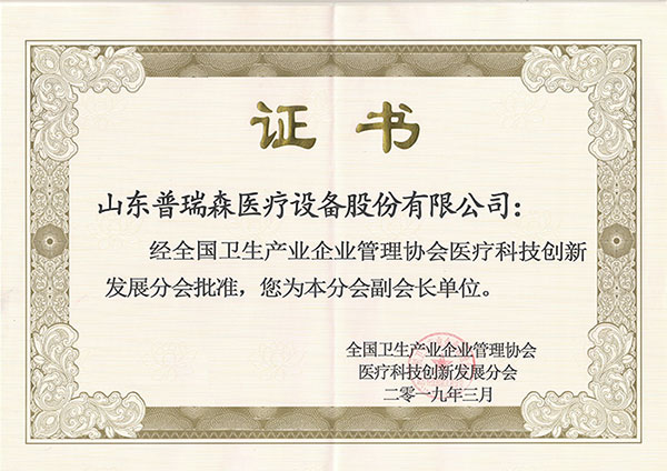 熱烈祝賀山東普瑞森醫療設備股份有限公司被評為副會長單位
