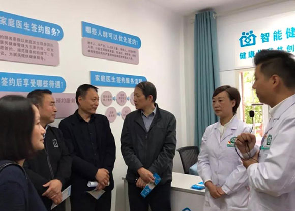 在慢病管理和家庭醫(yī)生簽約室,認(rèn)真聽取了新城區(qū)“彩虹工作管理法”“家庭醫(yī)生直通車”等創(chuàng)新舉措,提出“抓好典型,強(qiáng)化示范、全面推開”的殷切希望,并對(duì)新城社區(qū)衛(wèi)生服務(wù)工作給予高度評(píng)價(jià)和認(rèn)可。