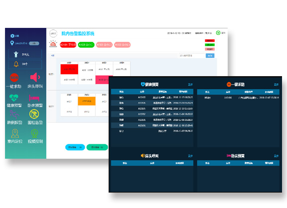 當發(fā)生各類報警時,硬件發(fā)出的告警可統(tǒng)一發(fā)送到告警監(jiān)控系統(tǒng),如定位終端、一鍵呼叫、電子血壓儀、血糖儀、智能床墊等,時時監(jiān)控管理老人安全、健康情況,當有異常,系統(tǒng)自動彈出報警提示窗口,值班人員可以查看具體由哪個設(shè)備、關(guān)聯(lián)老人、具體位置,進行快速的應(yīng)急處置。