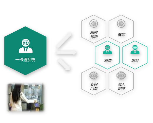 能在解決養(yǎng)老機構(gòu)的管理的繁瑣及復雜,將安保門禁、老人定位、購物、餐飲、服務(wù)、消費集合于一體,實現(xiàn)一卡通的管理模式,一張老人卡記錄老人的行動軌跡及所有的消費明細
